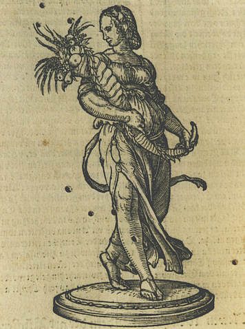 In aditu autem ipso stabat ostiarius prasinatus, cerasino succinctus cingulo, atque in lance argentea pisum purgabat. Super limen autem cavea pendebat aurea, in qua pica varia intrantes salutabat.